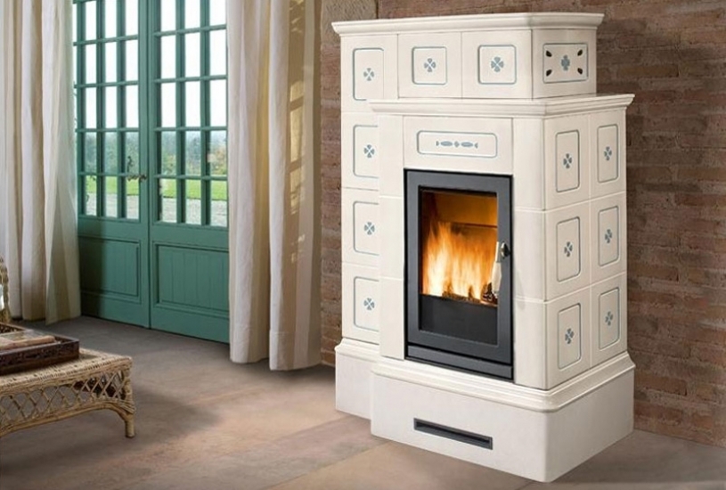 La massima linearità estetica caratterizza questa rivisitazione delle tradizionali forme delle classiche stufe in maiolica.