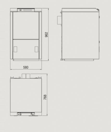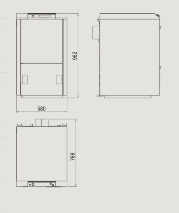 Caldaia a pellet a bruciatore soffiato, dalla tecnologia e manutenzione semplificate. Gruppo bruciatore esterno alla caldaia per una facile manutenzione e installazione (la caldaia può essere ordinata con predisposizione al montaggio del bruciatore sia a dx sia a sx in base alle esigenze di spazio/ingombro). La dotazione di serie prevede un serbatoio remoto con capacità 100kg e il gruppo di caricamento a coclea.