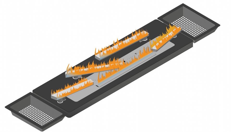 – Bruciatore Real Flame L Led dotato di 1 bruciatore piano, 4 bruciatori con fiamma dal ceppo e LED di serie