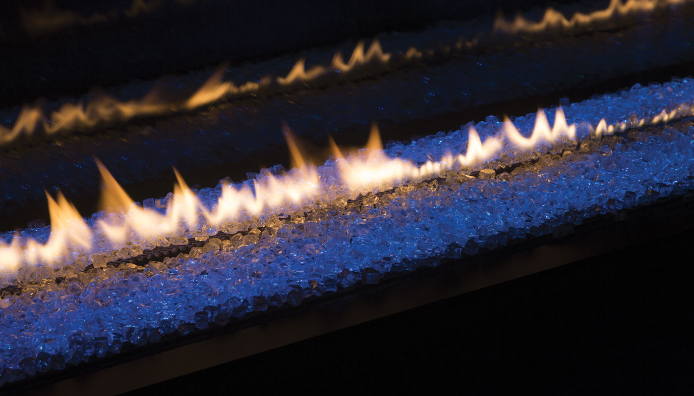 Questo camino è dotato dell’innovativo bruciatore Ledburner che offre una combinazione unica tra la lunga striscia di fiamme ondulate del bruciatore lamellare a gas e i molteplici colori delle gemme in vetro del piano fuoco con retroilluminazione a LED. L’andatura del fuoco, la temperatura ambiente e le colorazioni dell’illuminazione Led sono regolabili in modo ottimale consentendo di abbinare perfettamente l’aspetto del camino all’atmosfera del momento, fino a 7 colori diversi.