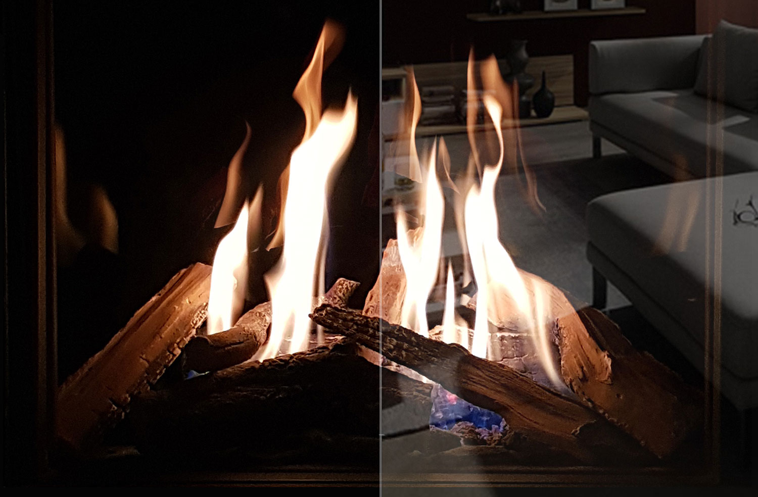 Si può ottenere un impatto visivo ancor più realistico dotando il focolare di un vetro antiriflesso AR, praticamente invisibile, ottenendo la sensazione di un vero caminetto a legna anche quando il fuoco è spento.