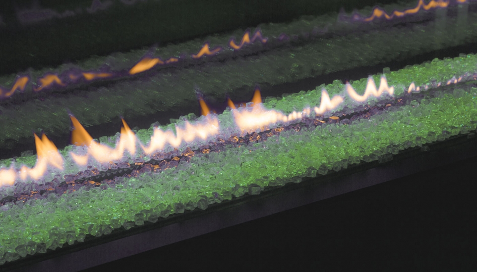 Questo camino è dotato dell’innovativo bruciatore Ledburner che offre una combinazione unica tra la lunga striscia di fiamme ondulate del bruciatore lamellare a gas e i molteplici colori delle gemme in vetro del piano fuoco con retroilluminazione a LED. L’andatura del fuoco, la temperatura ambiente e le colorazioni dell’illuminazione Led sono regolabili in modo ottimale consentendo di abbinare perfettamente l’aspetto del camino all’atmosfera del momento, fino a 7 colori diversi.