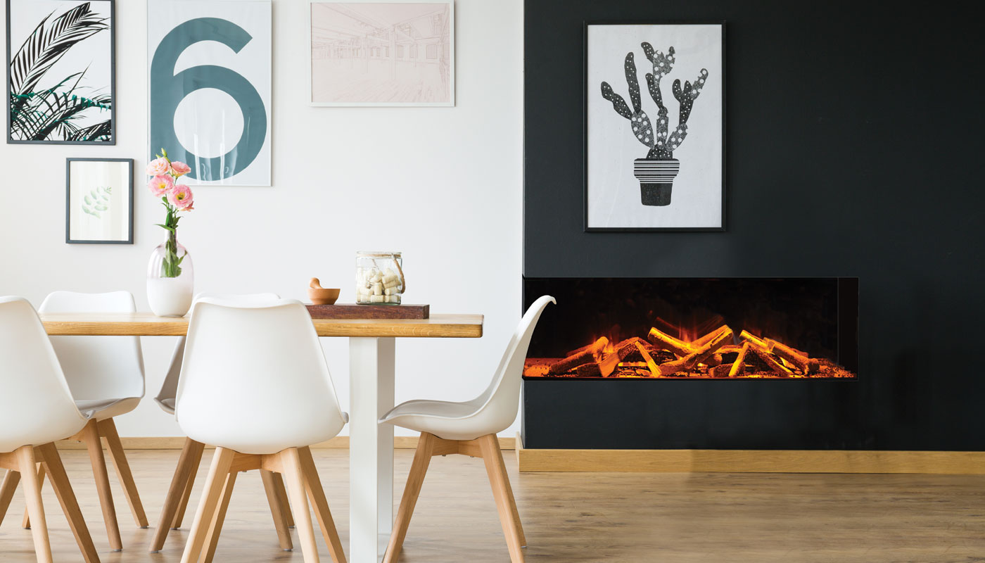 I caminetti elettrici si distinguono per una realistica immagine di fiamma, con riscaldamento integrato, varie opzioni di installazione (frontale, angolare e trifacciale in un unico modello) e un vetro quasi invisibile.